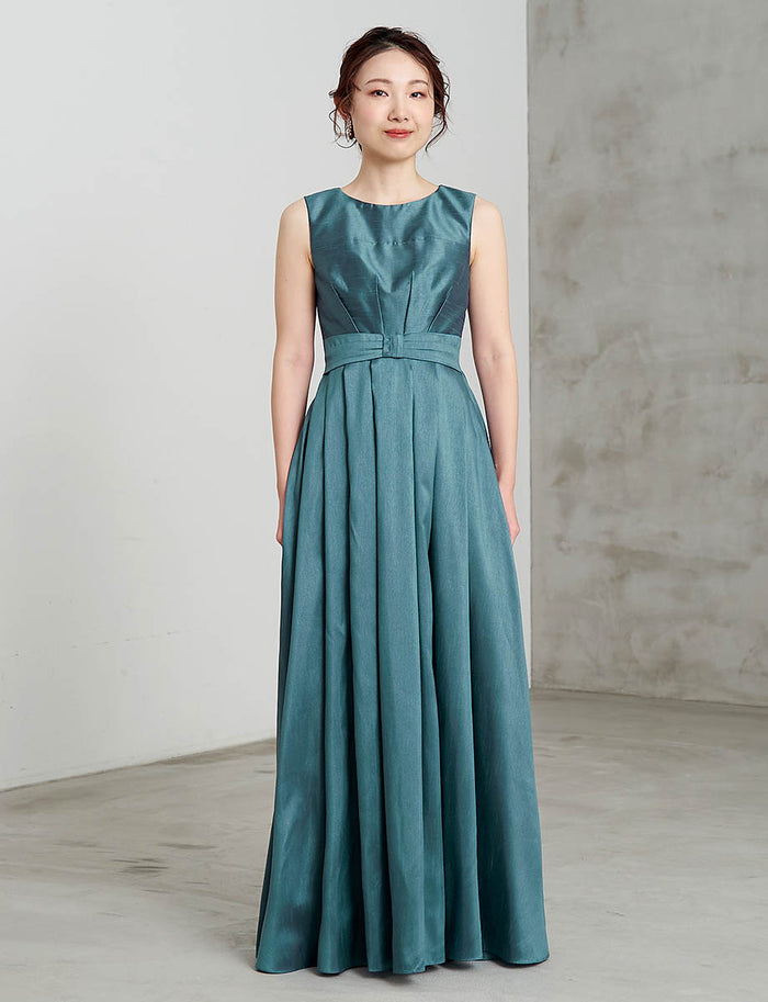 🎯人気ポイント:華やかなシャンタン生地を使用した、ウエストマークがポイントのシンプルな1着。