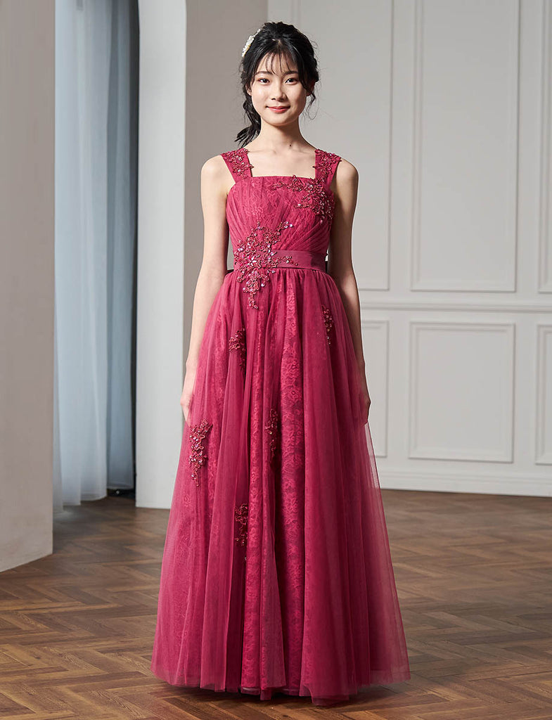 豊富なサイズ展開!華やかなアップリケとレースのコントラストがステージ映え抜群☆