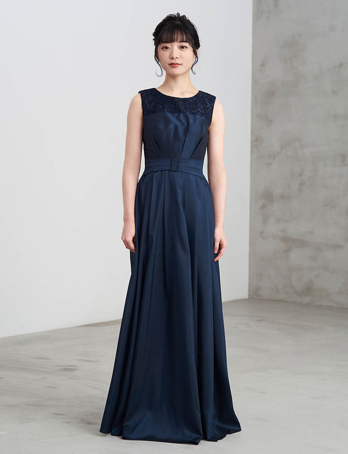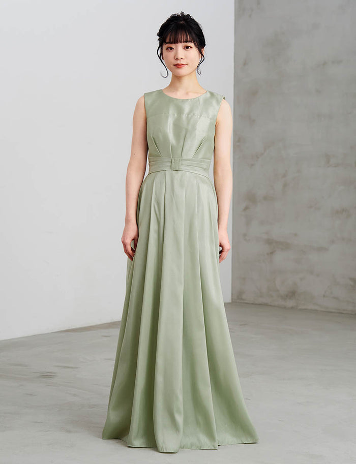 🎯人気ポイント:華やかなシャンタン生地を使用した、ウエストマークがポイントのシンプルな1着。