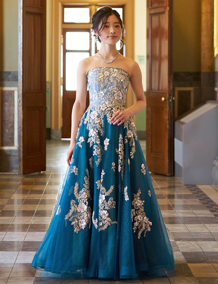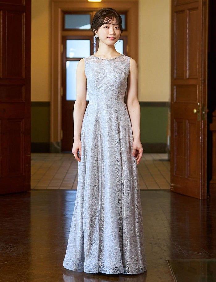 🎯人気ポイント:シルバーの華やかなアップリケが優しく広がるスモーキーな雰囲気に絶妙にマッチしたゴージャスな1着。